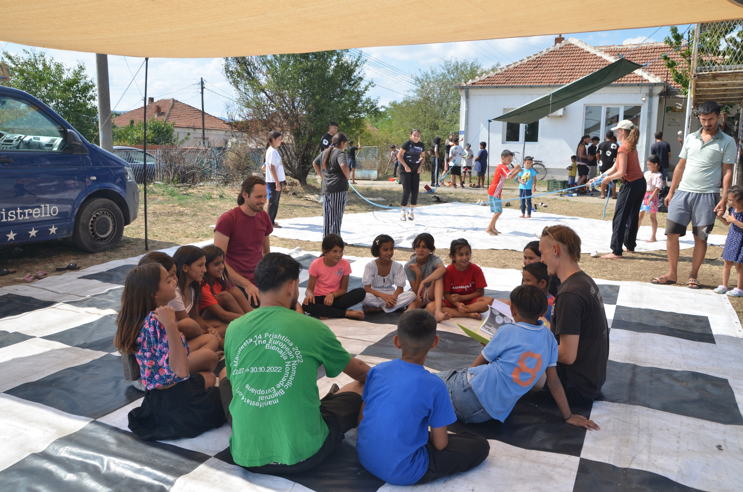 Während den Sommerferien 2025 führten wir zum vierten Mal eine Zirkuswoche mit den Kindern aus den Roma-Mahallas in Plementina durch. Plementina ist ein kleines multiethnisch geprägtes Dorf in der Nähe von Pristina. Auch heute noch bestehen Gräben zwischen den verschiedenen Ethnien. Die 6 Tage im August voller Zirkus, Spiele und Shows veranstalteten wir wie gewohnt gemeinsam mit einheimischen Helfer:innen, aber das erste Mal als neu gegründeten Verein Cirkorondo. Die Kinder übten in verschiedenen Zirkusdisziplinen, bastelten, tobten sich bei Spielen aus oder schauten zirzensischen Kurzauftritten zu. Als einer der Höhepunkte der Woche organisierten wir eine kleine Vorstellung. Nach einer Show des Zirkus-Teams übergaben wir die improvisierte Bühne den Kindern, die sich in verschiedenen kleinen Gruppen gegenseitig sowie Eltern und Bekannten zeigten, was sie in der Woche gelernt und geübt hatten.