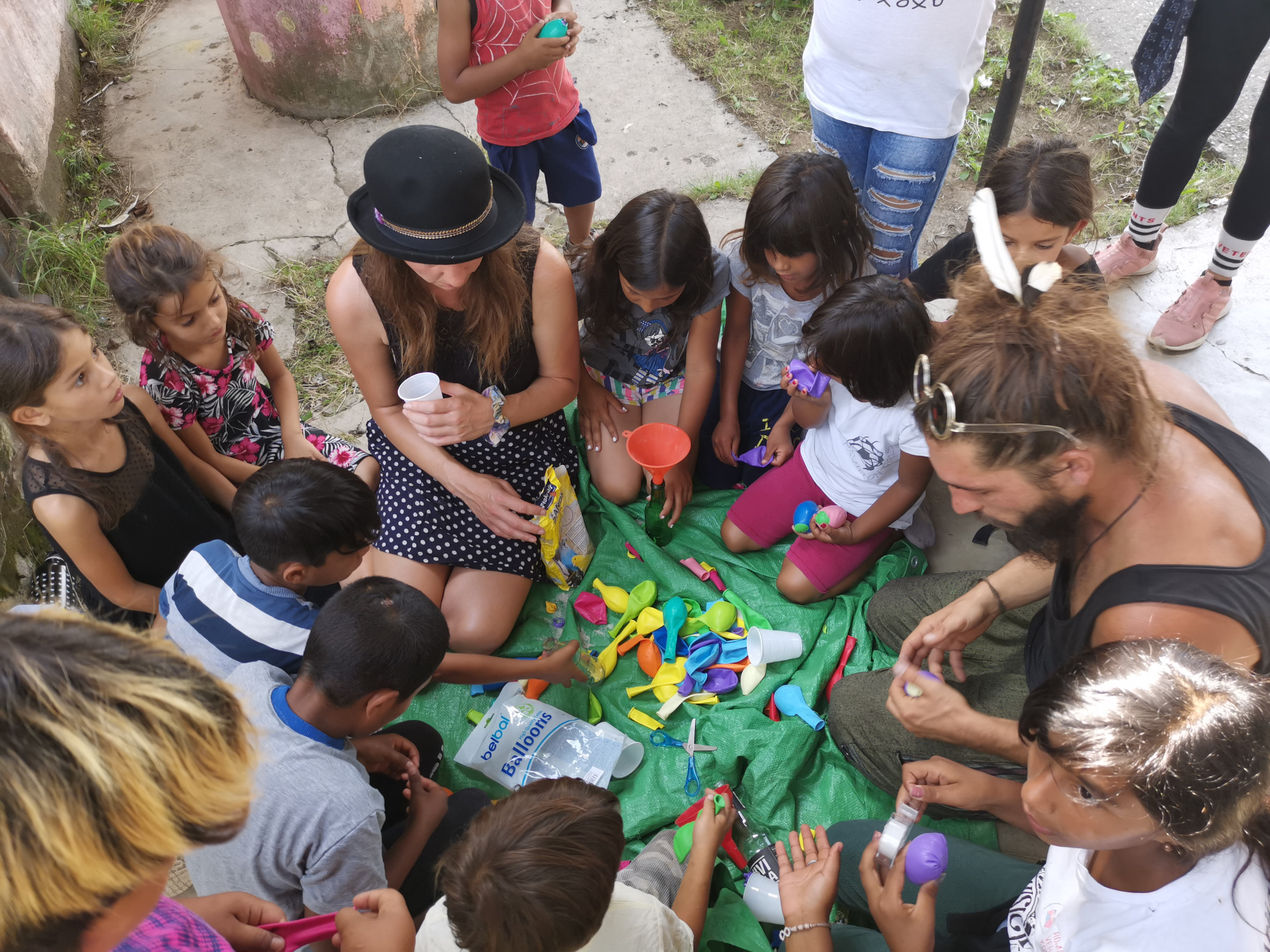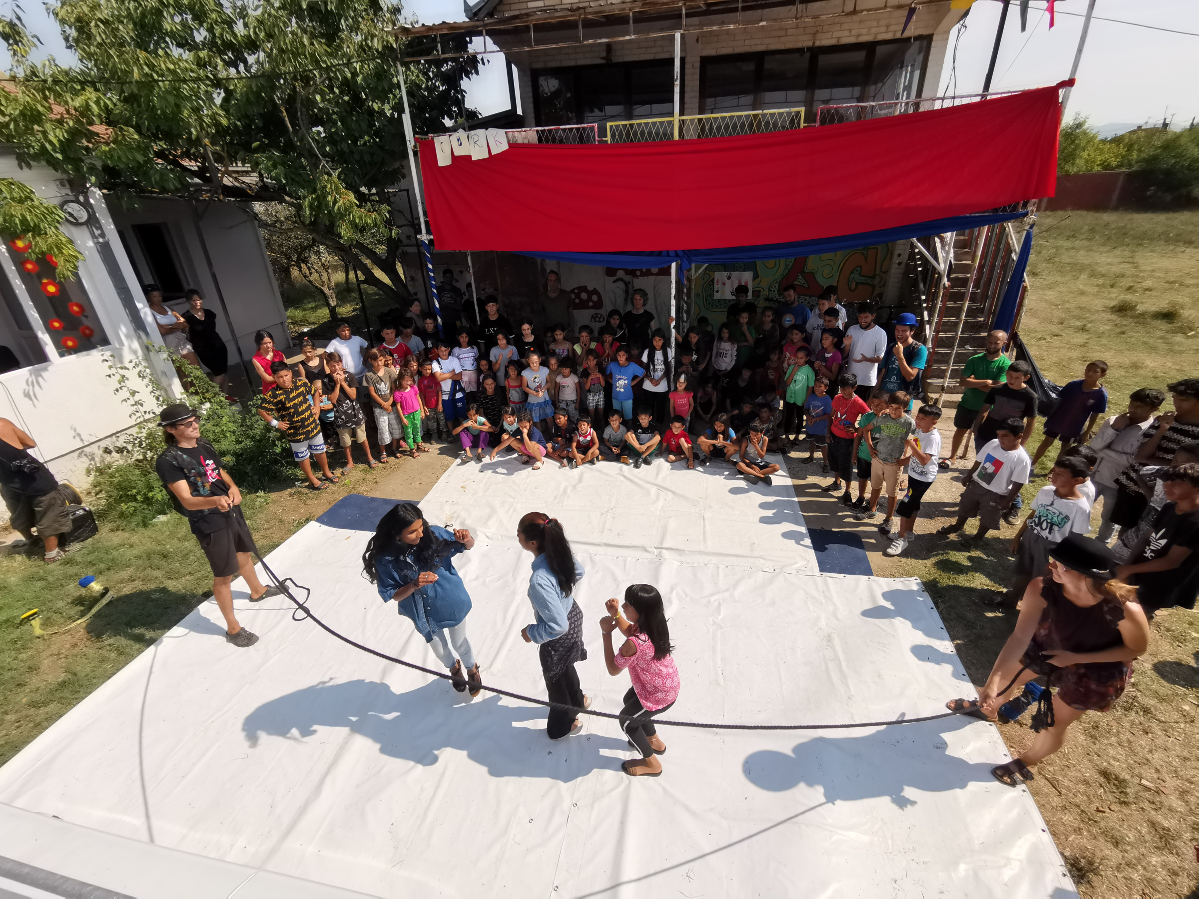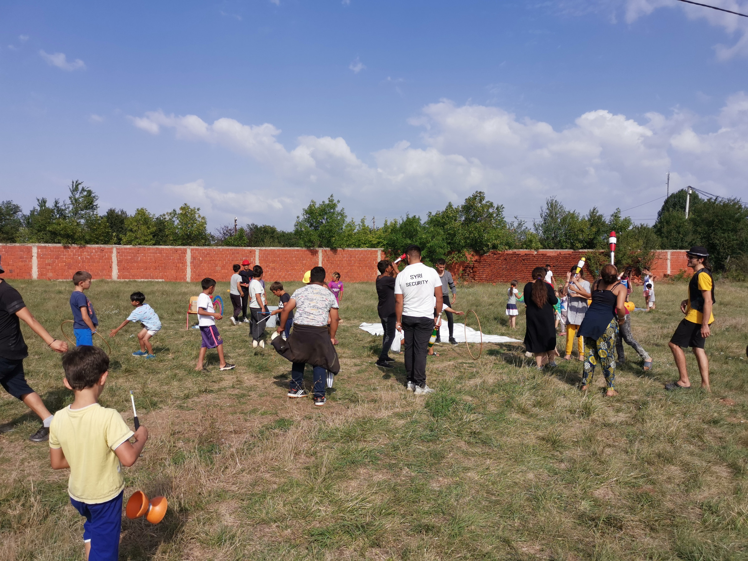 Am ersten Nachmittag gab es ein grosses Ausprobieren. Disziplinen wie Slackline, Jonglage mit Bällen, Keulen oder Tüchern, Diabolo, Poi, Teller, Akrobatik, Fasslaufen und Clowning gab es zu Entdecken. An den folgenden Tagen boten wir jeweils zwei bis drei Disziplinen zum Auswählen. Die meisten Kinder erfreuten sich an der Vielfalt, andere fanden schnell ihre Lieblingsdisziplin und übten fleissig. Die ganze Woche über herrschte Freude auf dem Platz. Allmorgendlich rannten uns die Kinder entgegen und konnten kaum warten, bis es endlich wieder losging. Um in der Gruppe anzukommen, leitete Kani aus der Plementina jeden Morgen ein Spiel an. Anschliessend gab mehrere zirzensische Kurzauftritte für die Kinder, wodurch wir sowohl Disziplinen vorstellten als auch versuchten, den Kindern Inspiration zu geben. Da die meisten Kinder kein Englisch verstanden, übersetzte der junger Roma Besnik für uns.